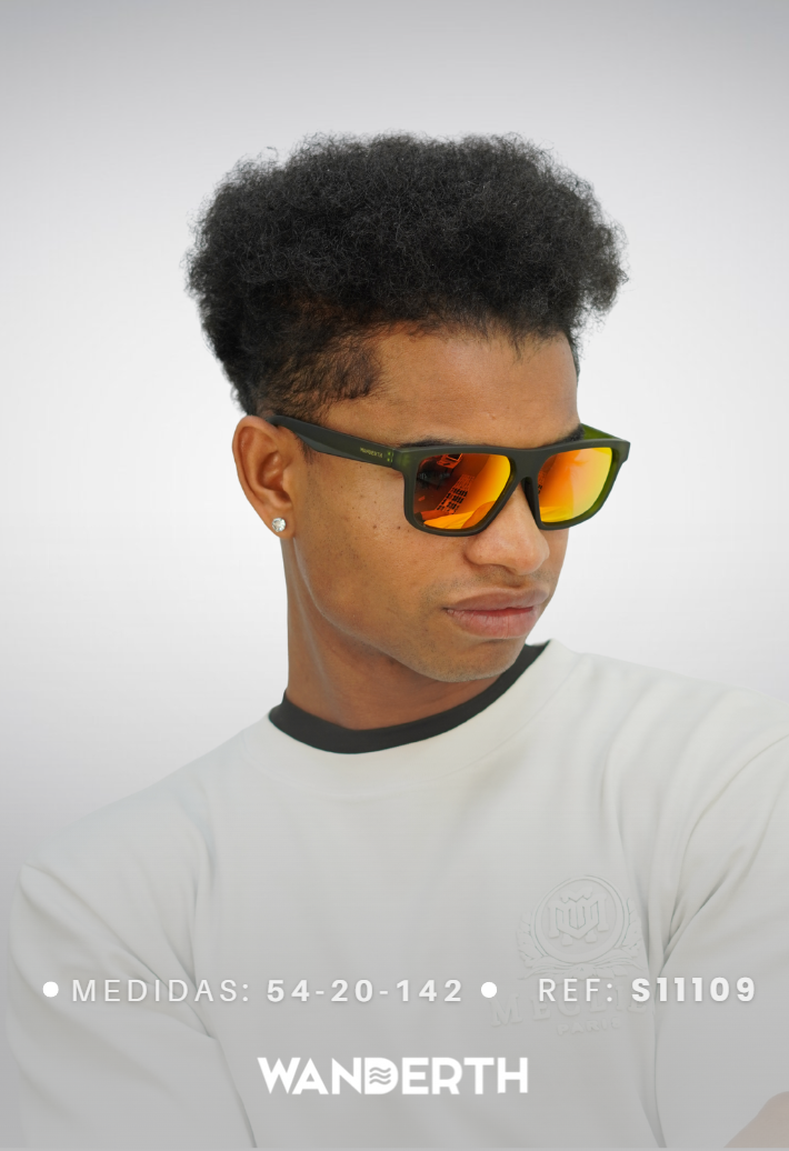 | Color | lente gris + marco negro, lente naranja espejo + marco verde oliva, lente café ámbar + marco negro |